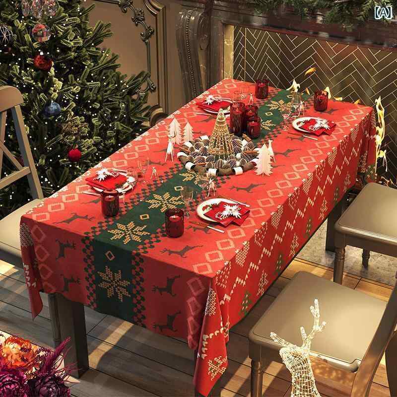 テーブルクロス クリスマス ライト 装飾 赤 緑 コーヒー パーティー ディナー レストラン キッチン ダイニング おしゃれ。