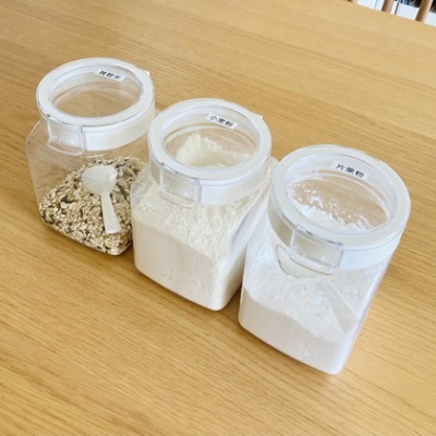 粉モノを便利&衛生的にストック!100均ショップの収納容器RoomClip mag暮らしとインテリアのwebマガジン。