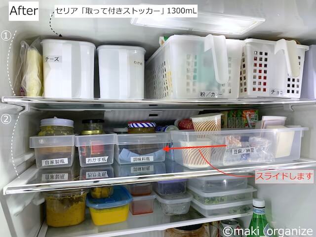 冷蔵庫内の収納2 ブックエンドで粉物を独立させる - ライフオーガナイザー®︎ 中矢くみこのブログ。