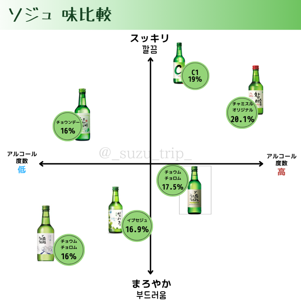 日本で買える韓国焼酎 6種類 徹底解剖!チャミスルとチョウムチョロン どっちが美味しいか!?suzu-trip。