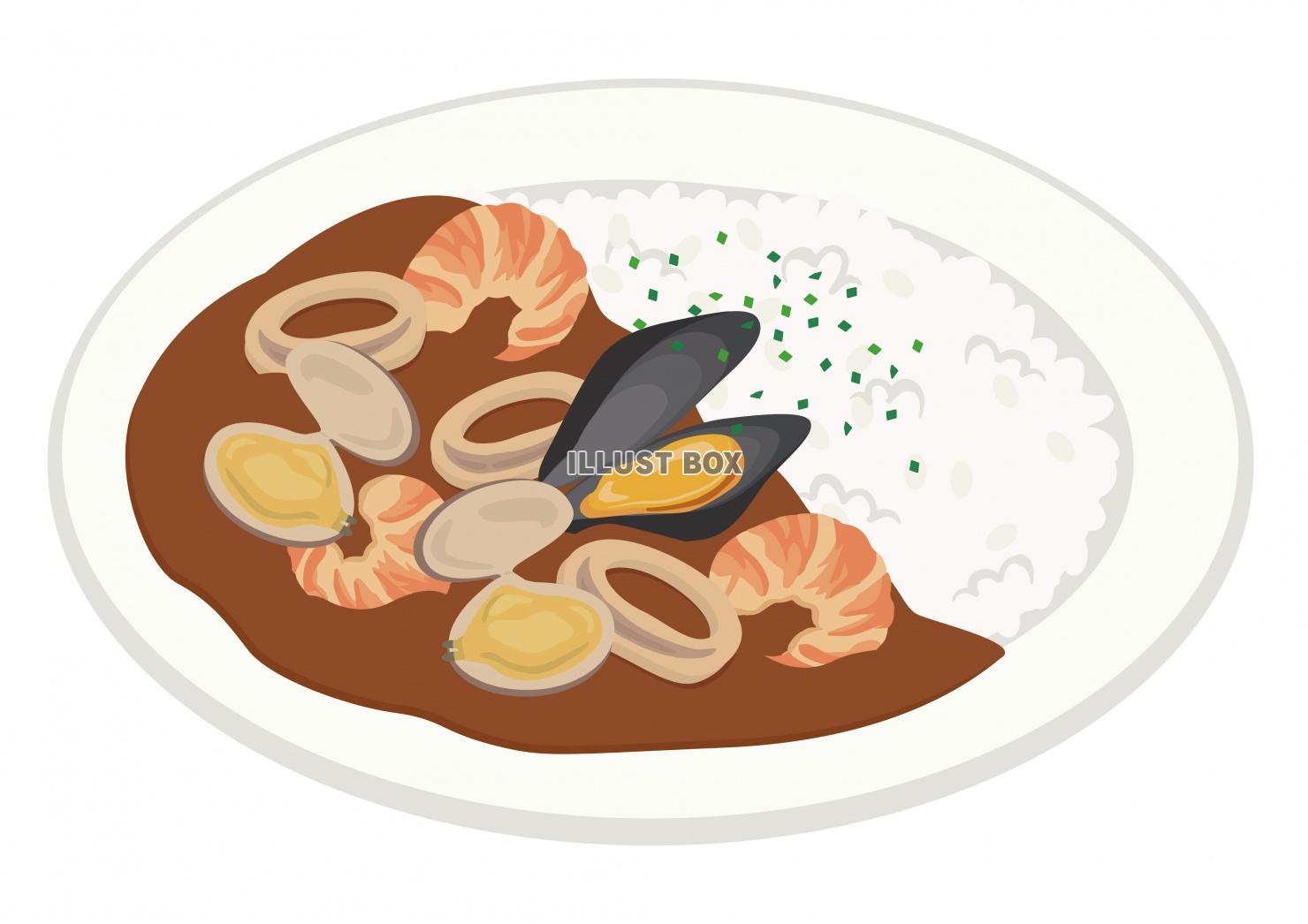 食事☆洋食シリーズ☆シーフードカレー☆カレーライス:イラスト無料。