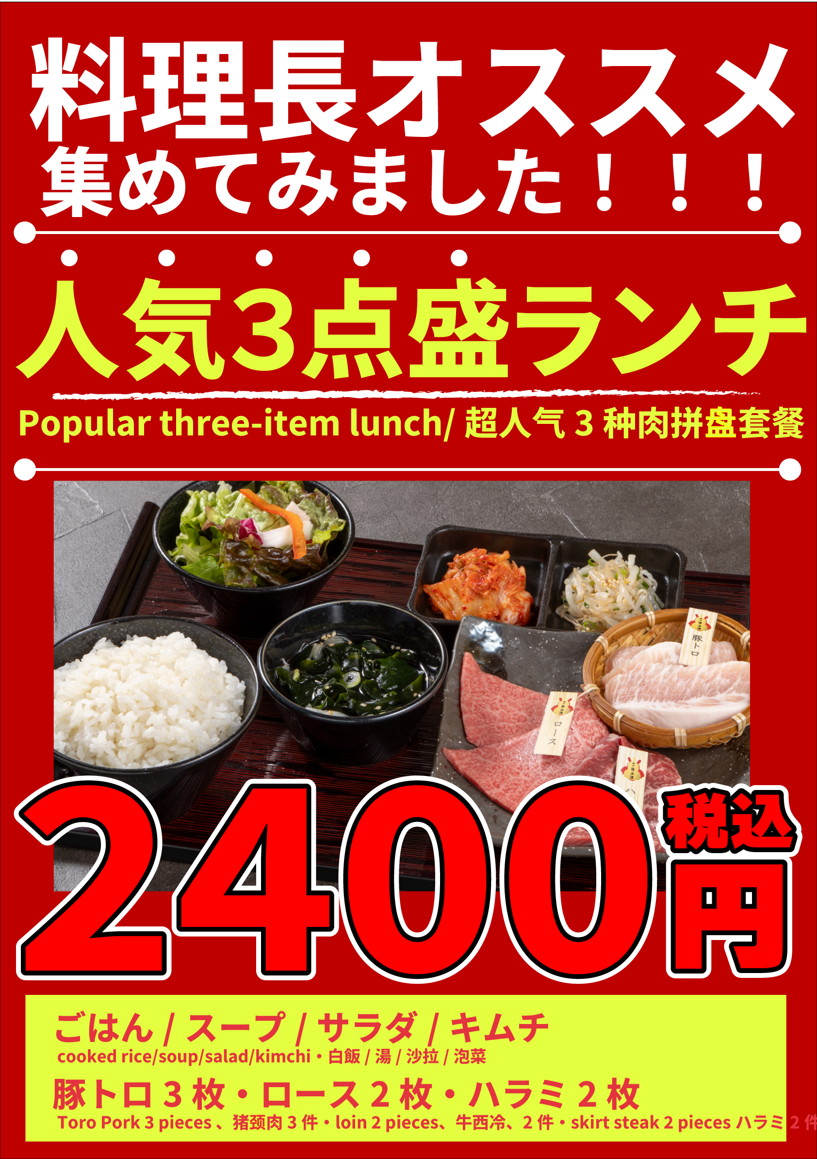 焼肉陽山道 上野広小路店限定 人気3点盛ランチのお知らせ 全日公式 焼肉陽山道。