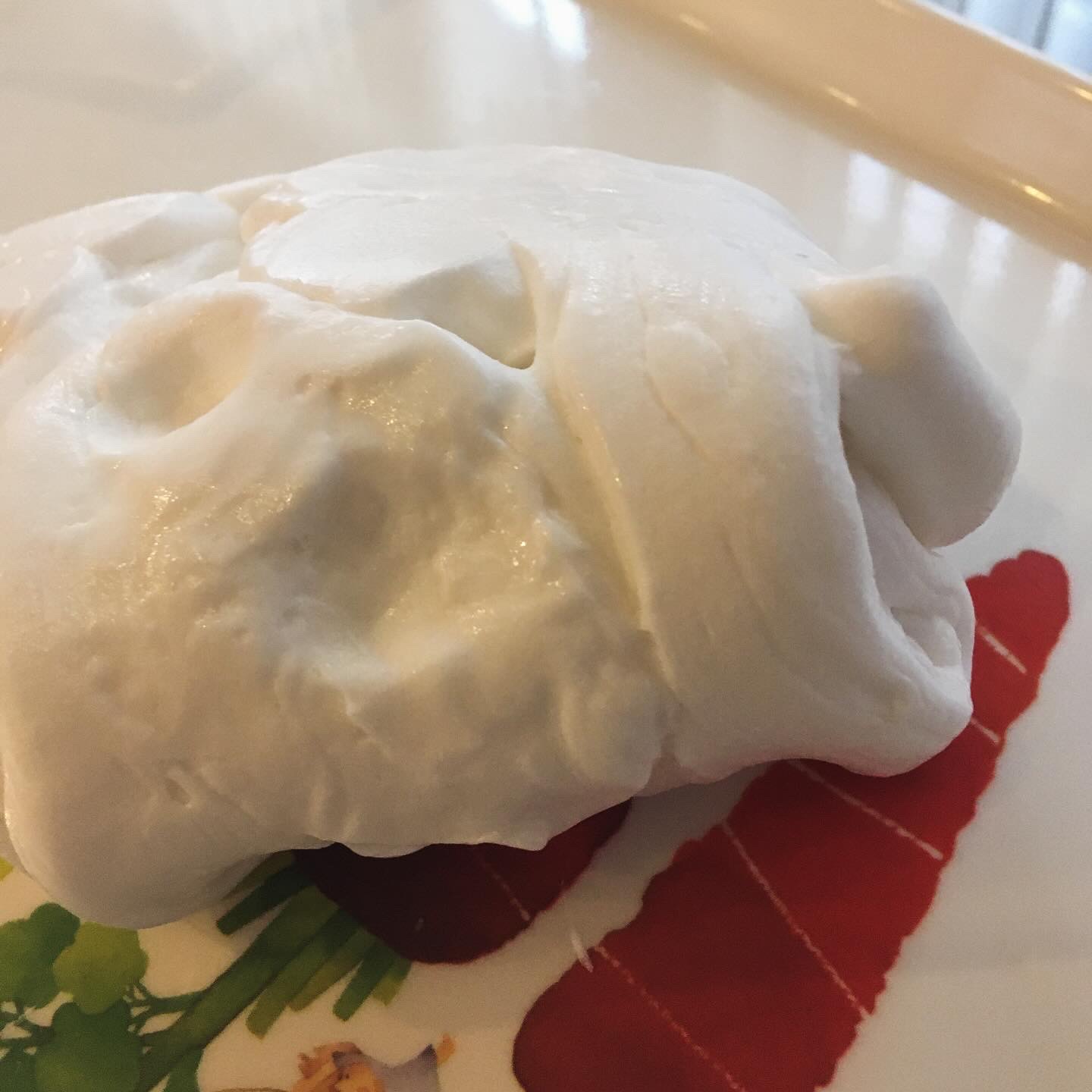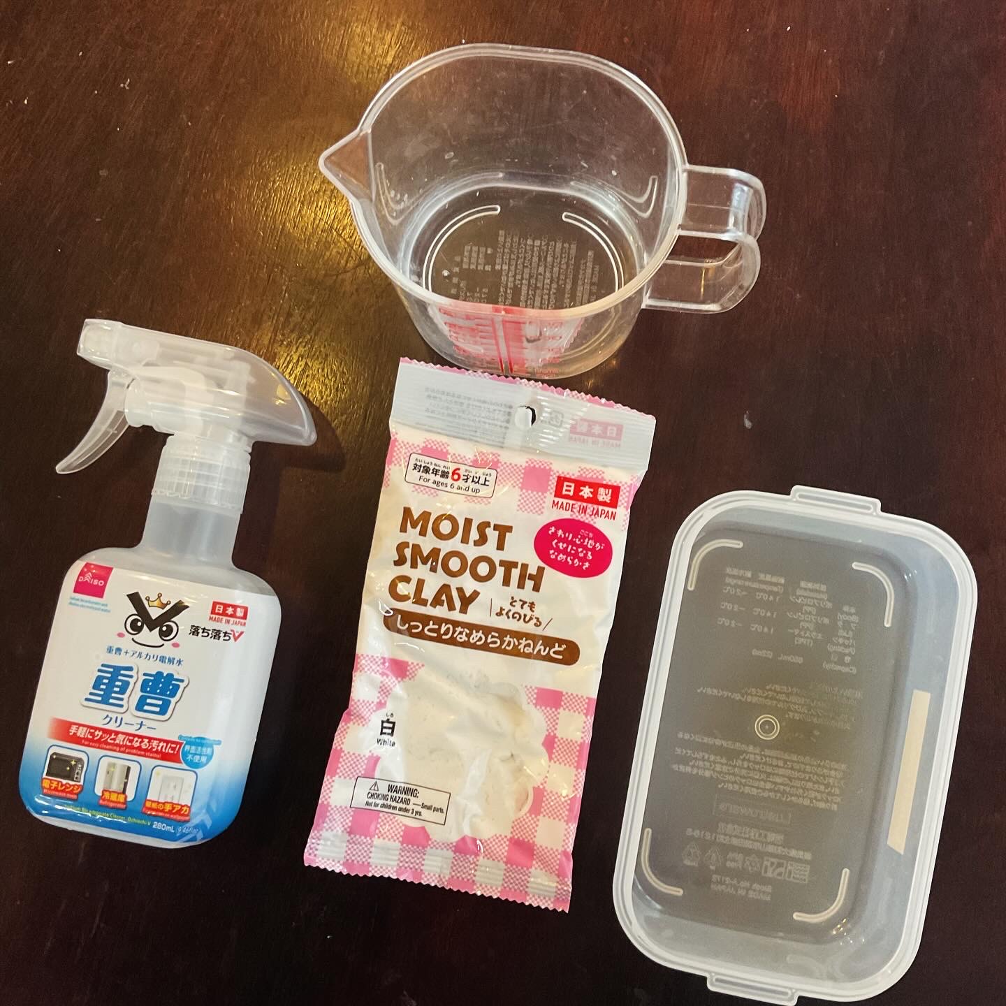 セリアで買ったエンジェルクレイ 粘土 に、水で薄めた重曹を足して ふわふわスライム を作りました◎ スライムはこどもたちが大好きで長時間遊んでくれるので重宝しています💫手で触って感触を楽しみながら一緒に作れて楽しいのでおすすめです🙆🏻♀️ ◾️用意するもの。