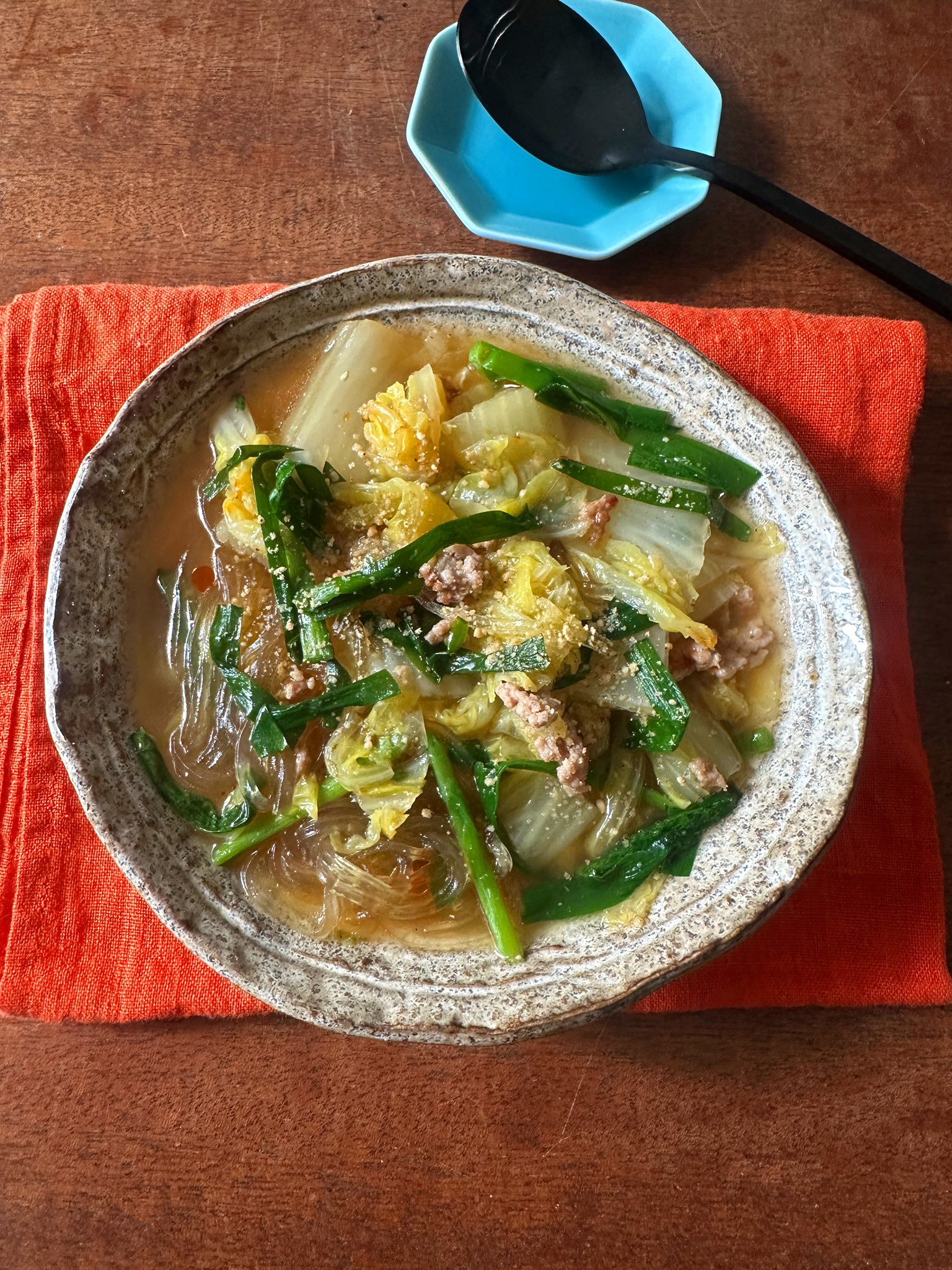 フライパン1つ ひき肉と白菜のピリ辛春雨スープ*明日「相葉マナブ」明後日「せのぶら本舗」出演山本ゆりオフィシャルブログ「含み笑いのカフェごはん『syunkon』」Poweredby Ameba。