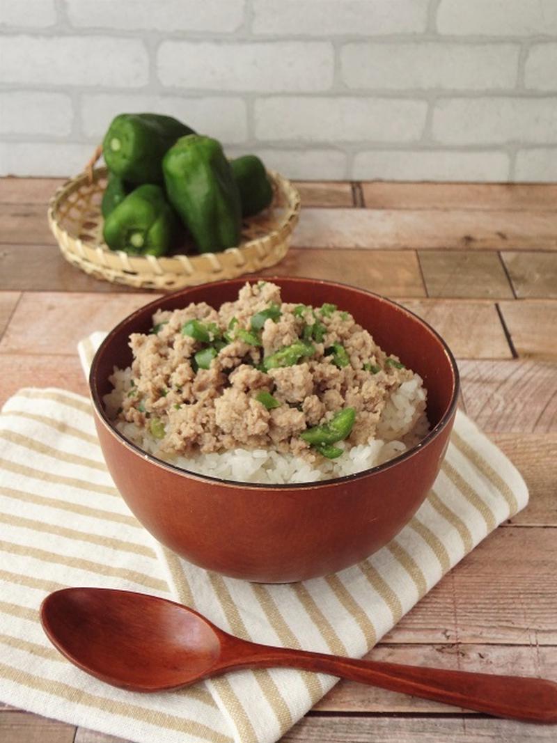 「ピーマンと新玉ねぎの和風甘辛ペッパーミンチライス」レシピ。