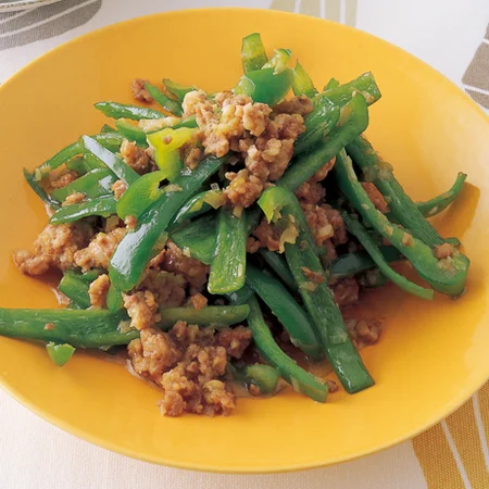 ピーマンの合挽き肉焼肉のたれ詰めレシピ。