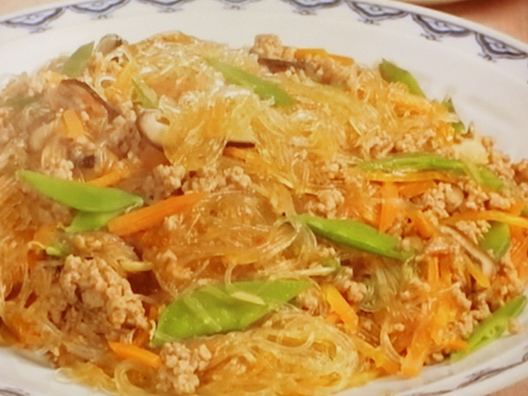豚ひき肉とはるさめのピリ辛炒め煮。