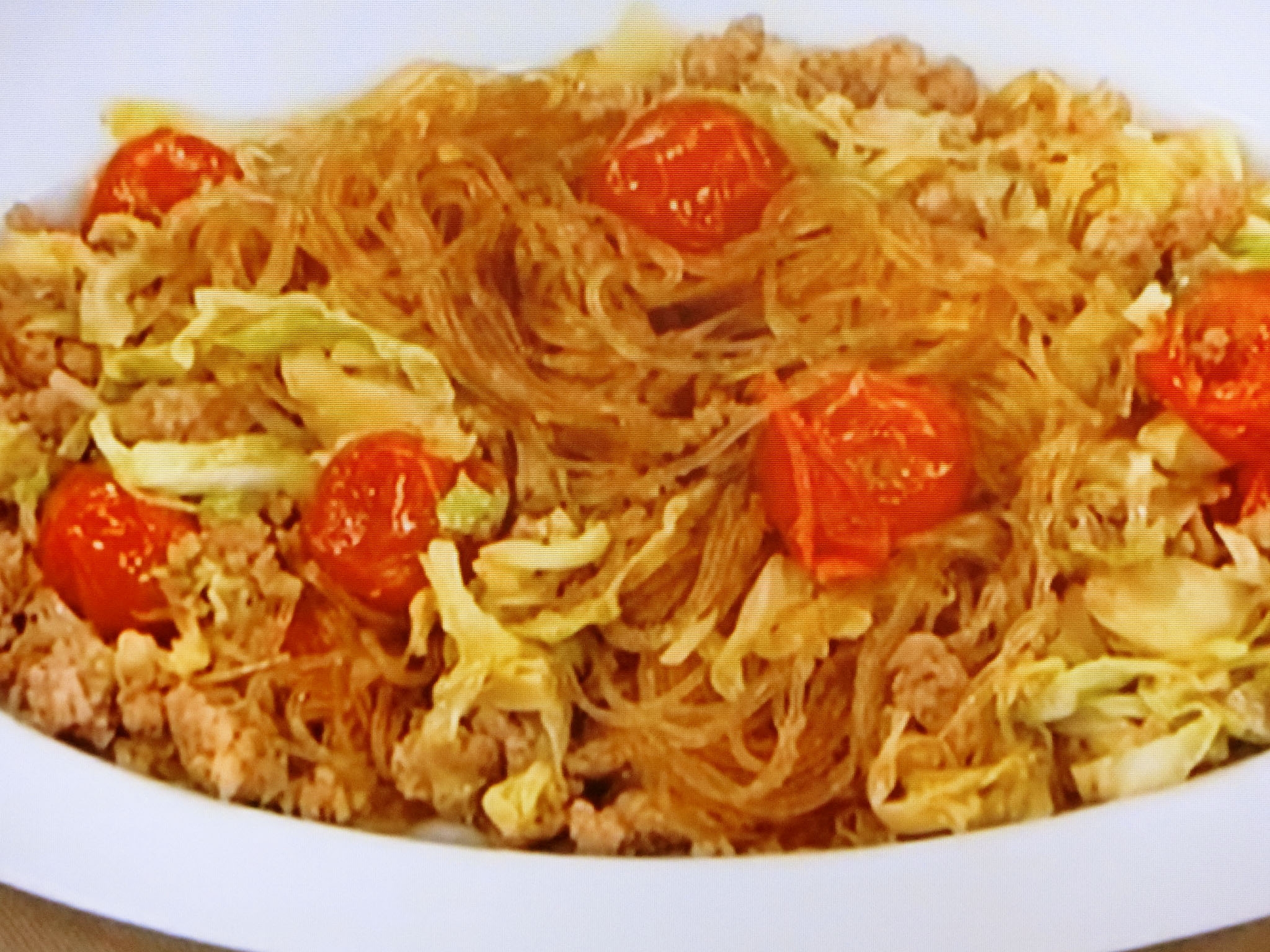 「あさイチ」ひき肉とキャベツのピリ辛春雨煮。