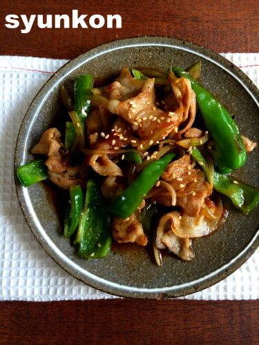 簡単!!!10分ごはん 豚肉とピーマンと玉ねぎのピリ辛しょうが炒め*のっけごはん。