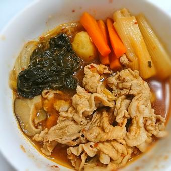 簡単!お得!豚キムチの残りで作るスープ♪。