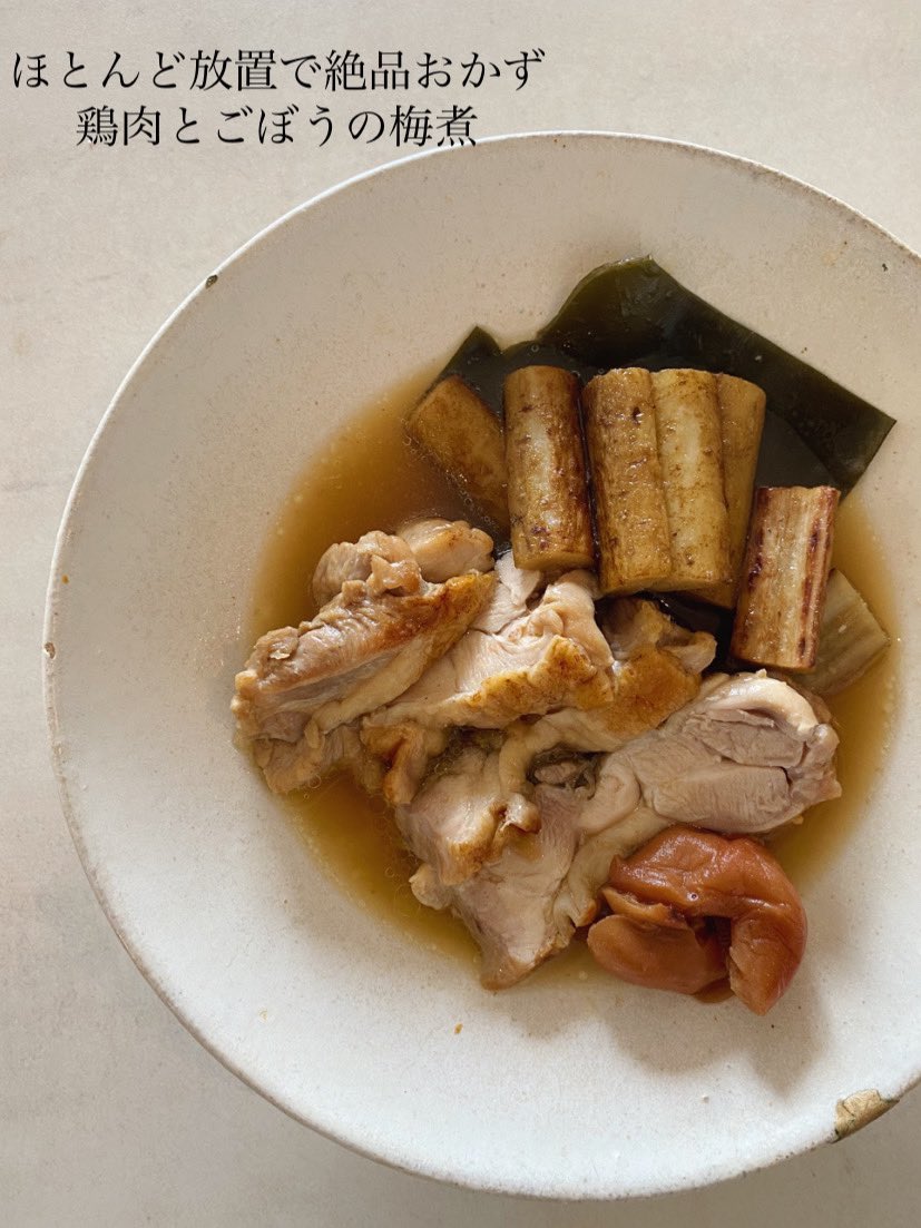 長谷川あかり on X: "味わい深い地味ごちそう、鶏肉とごぼうの梅煮のレシピ。焼く→煮る 放置 →放置の3ステップで、毎回同じ味になってしまいがちな 煮物がワンランク上の味わいに。超簡単というわけではないし、少しだけ時間もかかるけれど、本当に少しだけ、あえて手を。