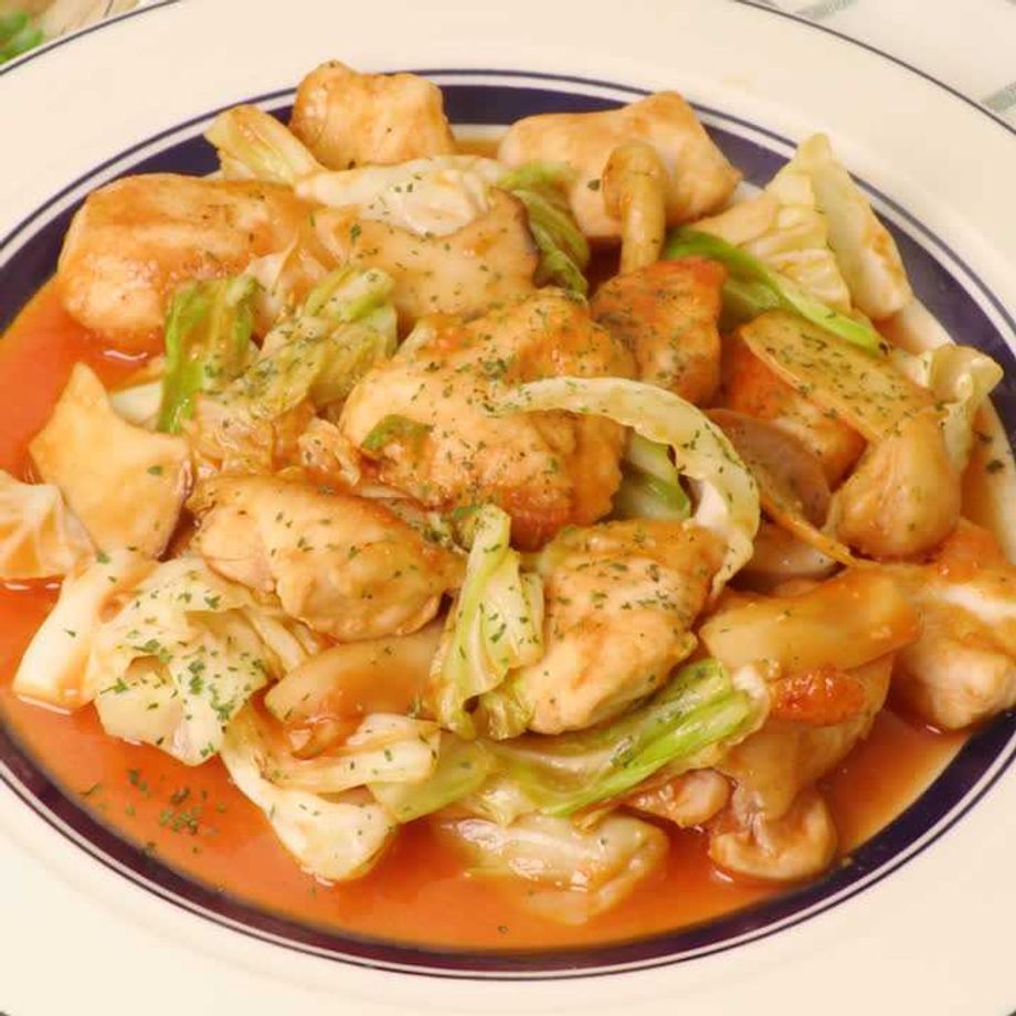 たっぷりキャベツと鶏もも肉のケチャップ煮クラシル。