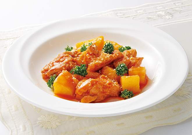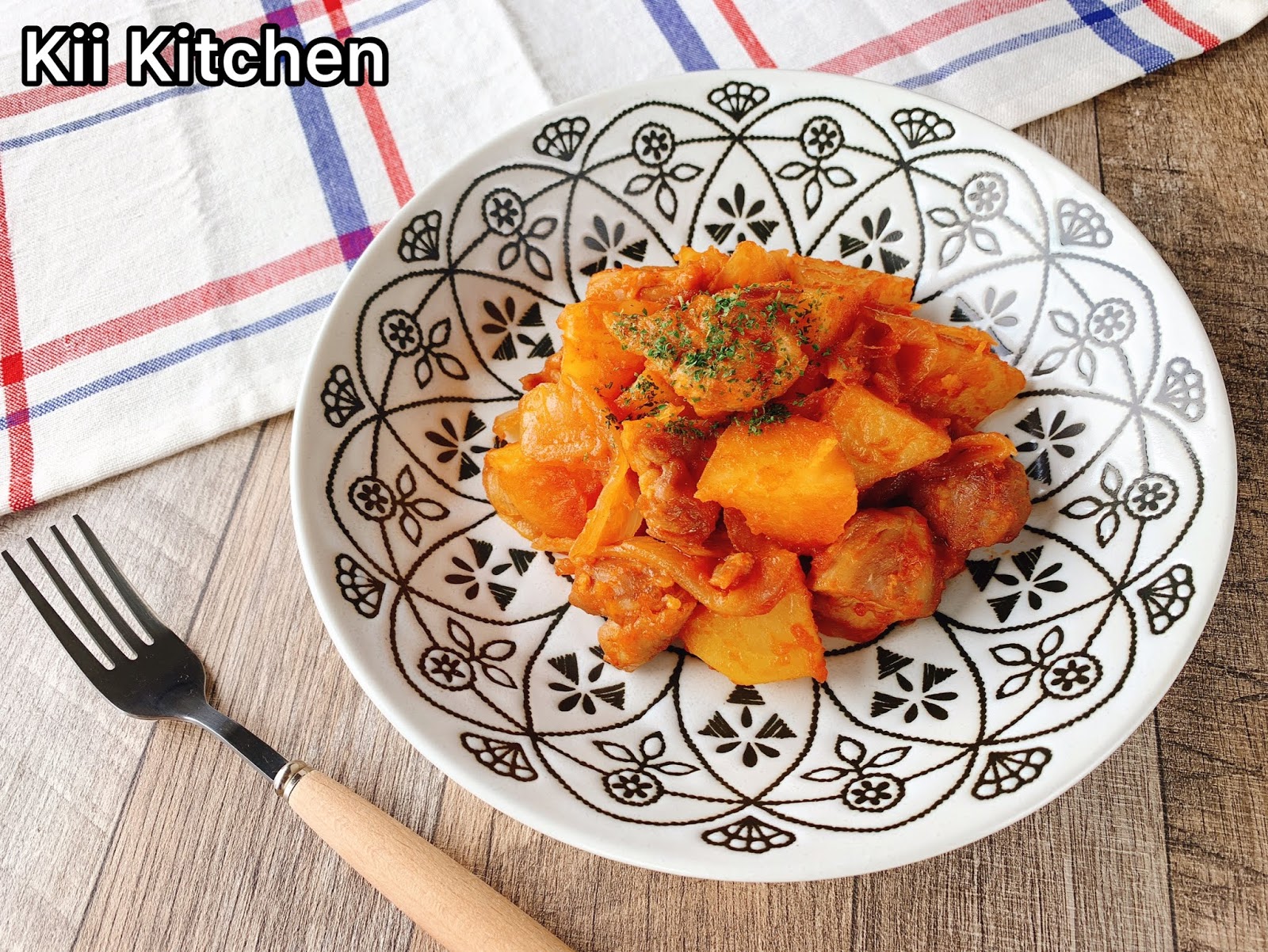 和洋がおいしくコラボ!鶏肉とじゃがいものケチャップ煮。