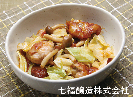 「とり肉とキャベツのみそケチャ煮」の献立。