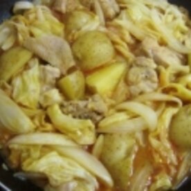 たっぷりキャベツと鶏もも肉のケチャップ煮。