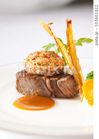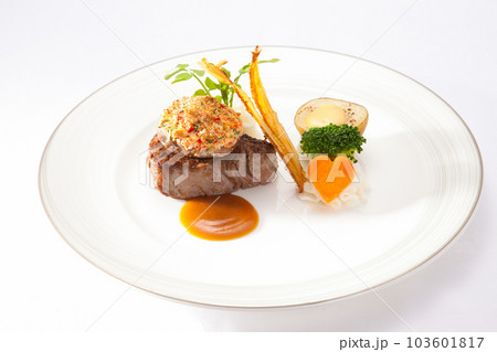 トリュフの乗ったフレンチコースのメインビーフステーキ おしゃれな盛り付けの素材画像の写真素材103601828- PIXTA。