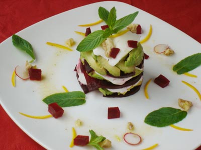 パリらしいおしゃれな料理 サラダミルフィーユ。