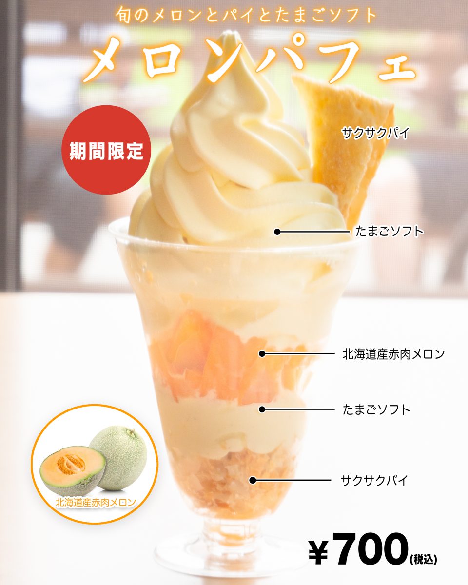 期間限定メロンパフェ平飼い卵とスイーツの永光農園。