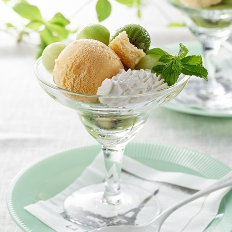 キウイとメロンのヨーグルトパフェ - おすすめレシピダイエー食の情報。