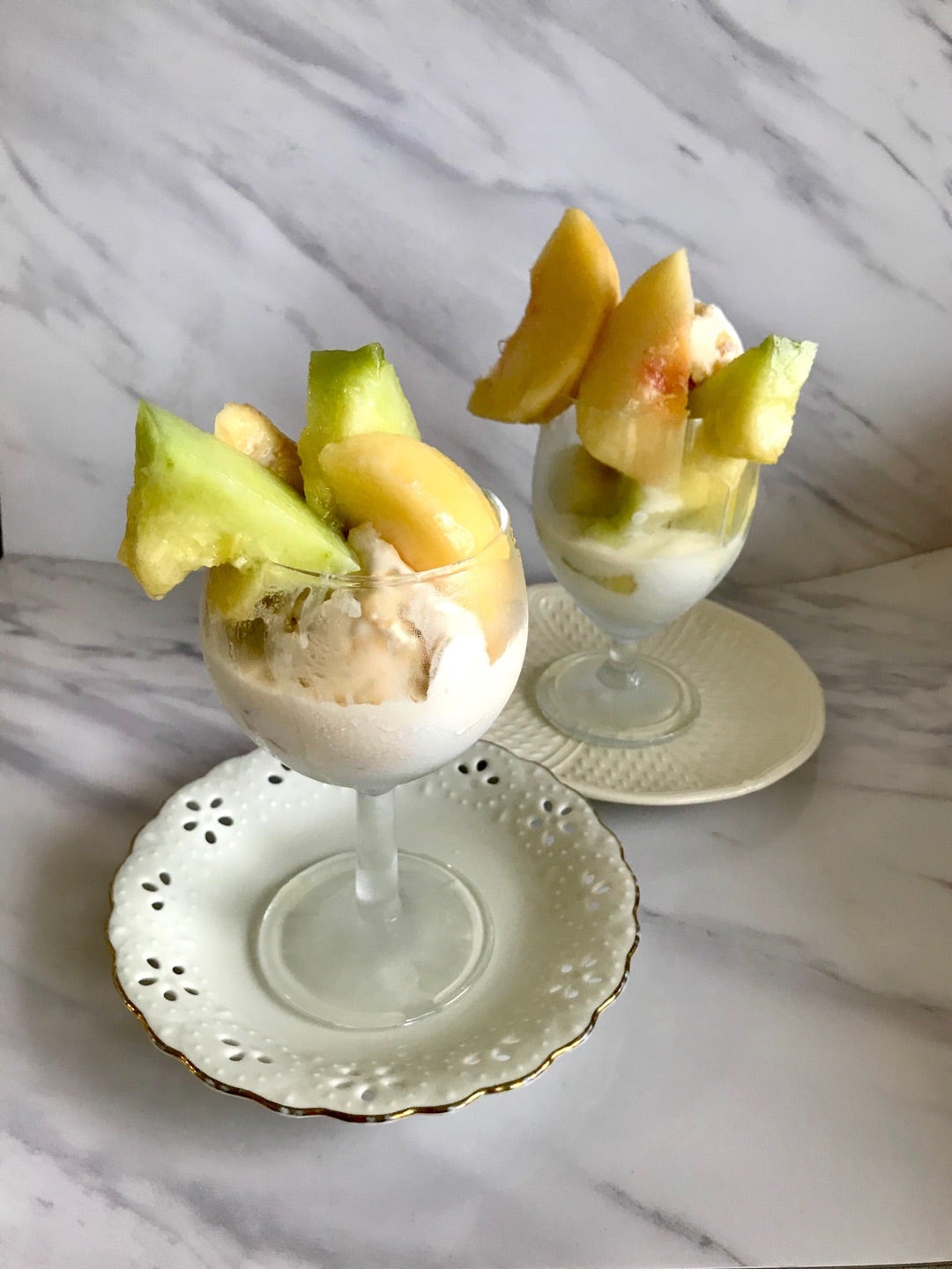 メロンパフェを作りました猫と器好きな主婦の食卓日記。