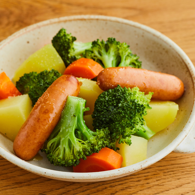 野菜とソーセージのフライパン蒸し。
