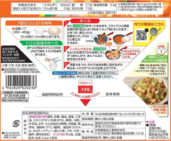 楽天市場 丸美屋 麻婆豆腐の素 鶏白湯味 162g×10箱入 送料無料 一般食品 調味料 素 マーボー豆腐 料理の素 中華料理 鶏しお味: 飲料食品専門店 味園サポート。