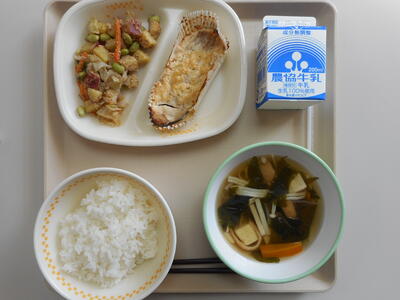 鮭の味噌マヨ焼き 給食 (392 無料写真)