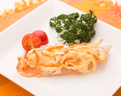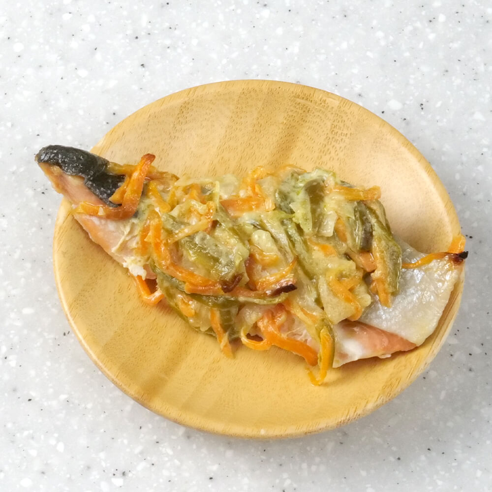 <特定原材料8品目不使用>鮭と野菜のみそマヨ焼き。
