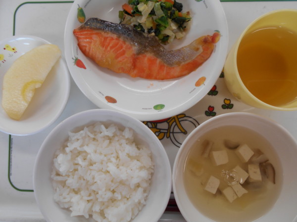今日の給食 夏見台幼稚園・保育園 2017.12.11 鮭のみそマヨネーズ焼き : 今日の夏見台幼稚園・保育園。