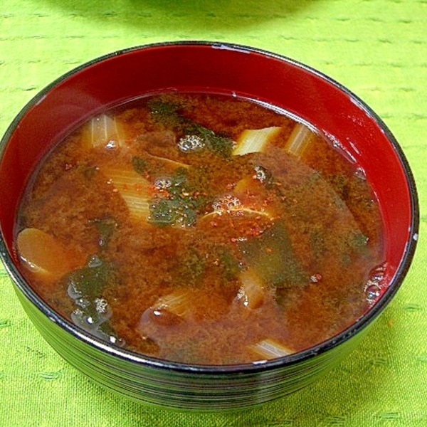 白ねぎとわかめのお味噌汁 赤だし。