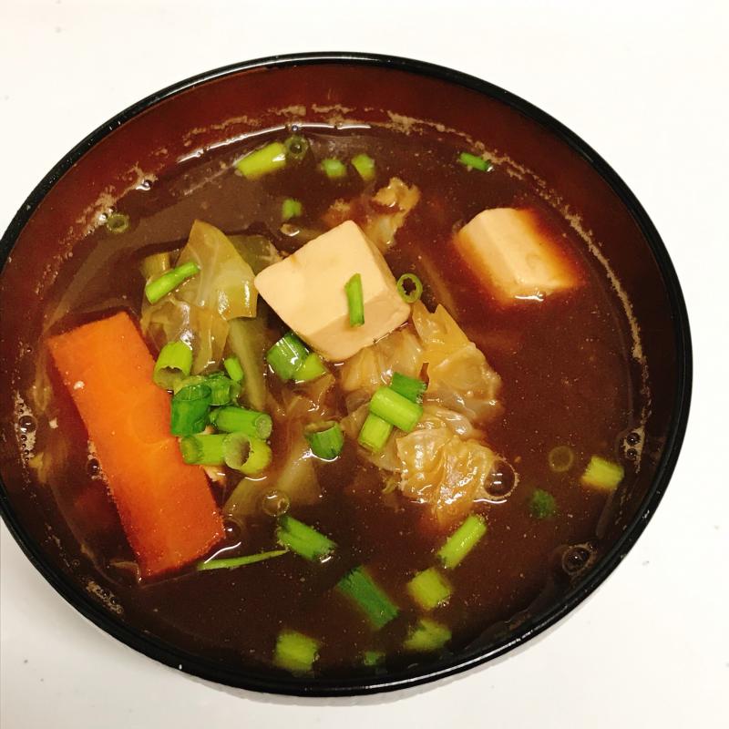 野菜たっぷり赤だし味噌汁。