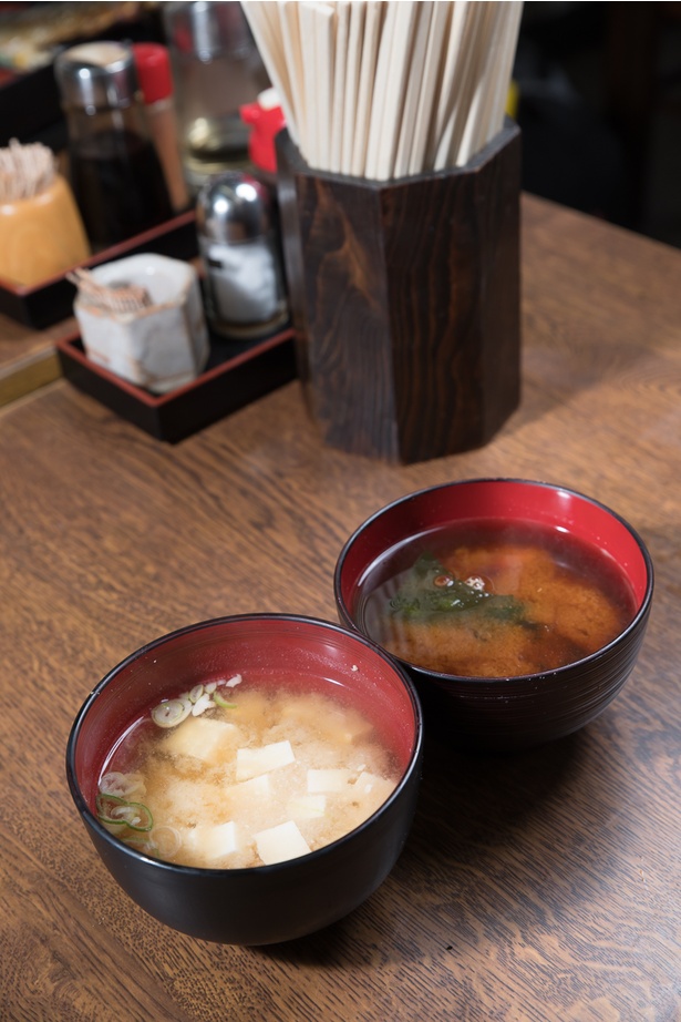 中華丼の赤だし味噌汁。