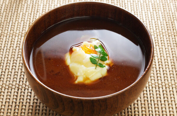 温泉卵の赤だし。
