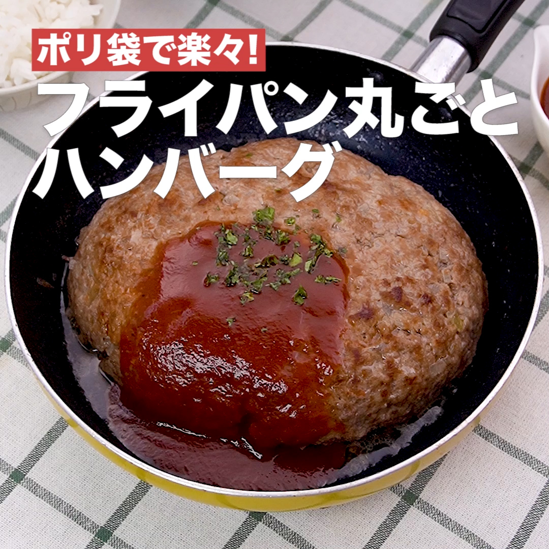 ポリ袋で楽々! フライパン丸ごとハンバーグ。