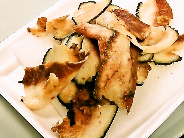 この日は「イッコースペシャルコース」。 ニタリクジラの刺身やジャーキー、竜田揚げのほかに地球上で2番目に大きい生物「ナガスクジラ」を使ったクジラベーコン、鍋をいただいた。 鍋にはさらにニタリクジラのしゃぶしゃぶ、クジラの手羽で炊き込みご飯を作り、自然薯。