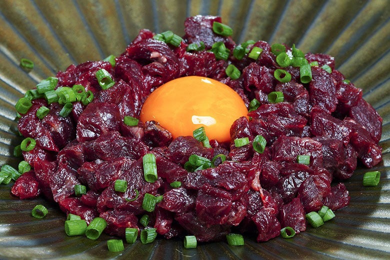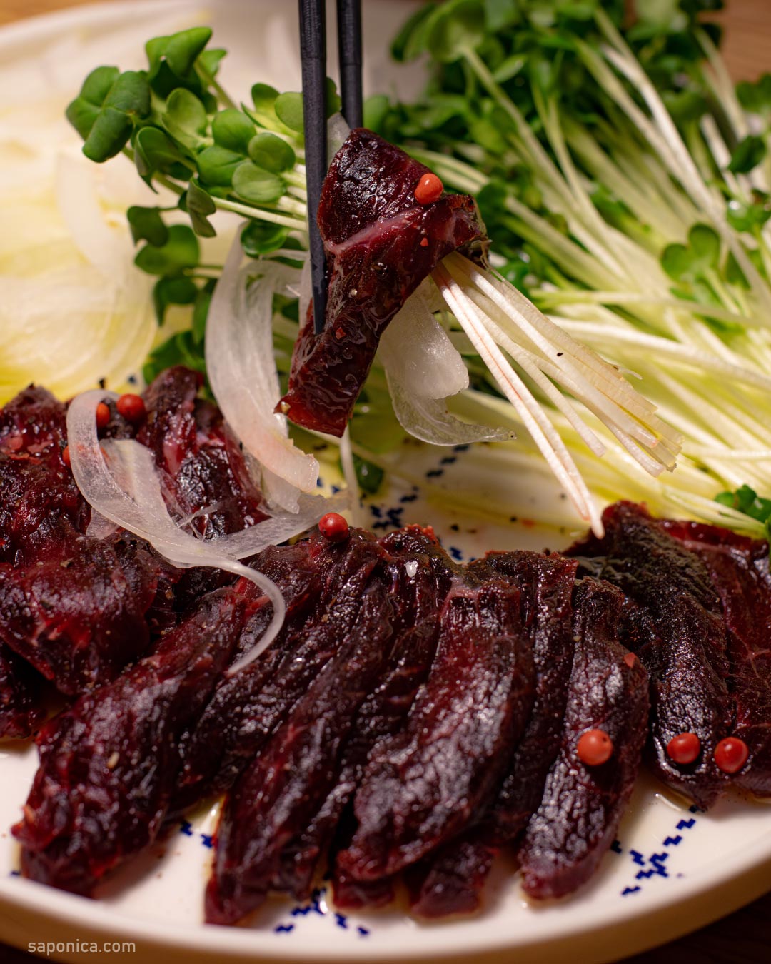 ニタリクジラのユッケを食べるか。