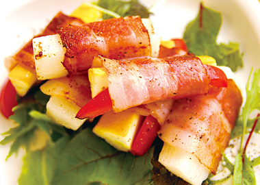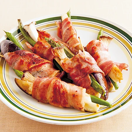 レシピ詳細 トマトといろいろ野菜のベーコン巻き 美味食彩平和堂のWEB COOKING CARDメニュ。