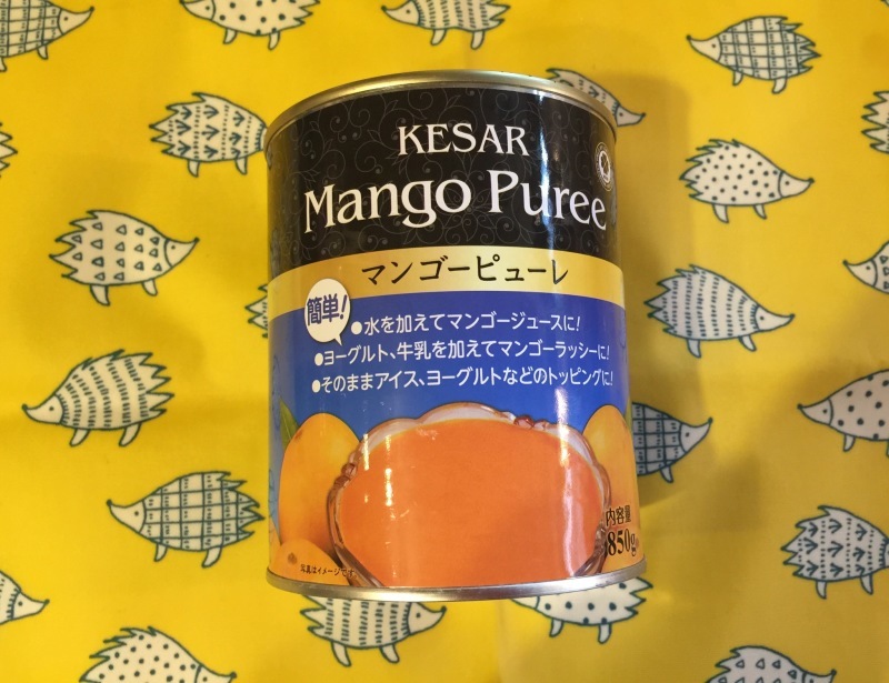 業務スーパーのマンゴーピューレ缶詰は濃厚な甘さが美味♪お菓子の材料にも使える業スーおすすめブログ。