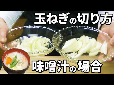 わかめと 玉ねぎの味噌汁のレシピ 切り方と具の組み合わせ。