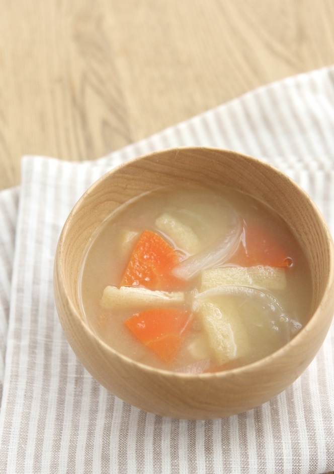 簡単にできる! 玉ねぎとにんじんの味噌汁。