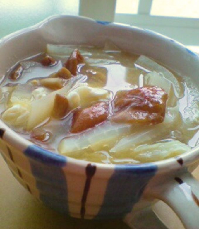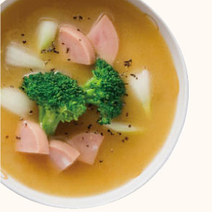 とろとろ丸ごと玉ねぎとシャウエッセンのみそ汁。