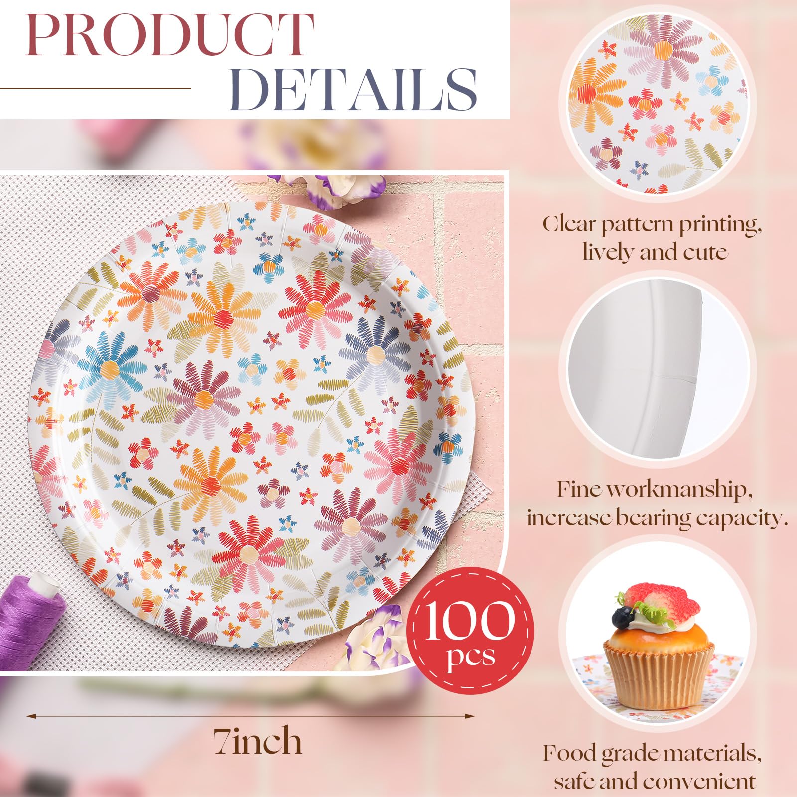 CIEOVO 40枚 春 蝶 花柄 花 使い捨てプレート 蝶 パーティー ペーパー ディナー デザートプレート 春をテーマにした結婚式 ブライダルベビーシャワー 女の子 誕生日パーティー用品。