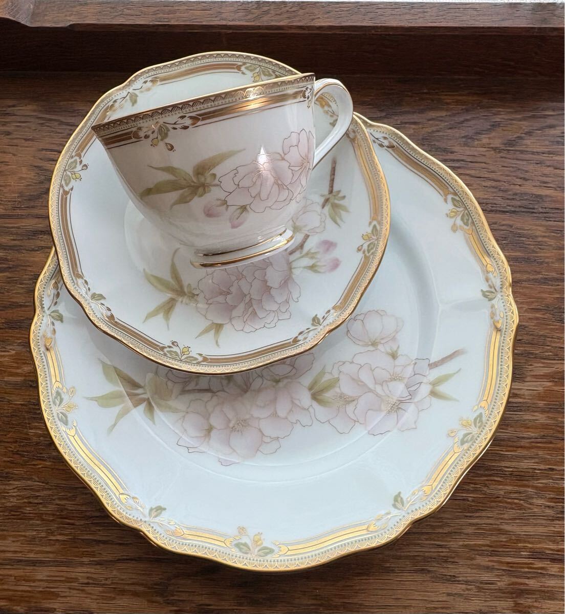 ノリタケ ガラコンテッサ 桜 トリオ カップ&ソーサー デザートプレート 春 金彩 未使用品 桜。