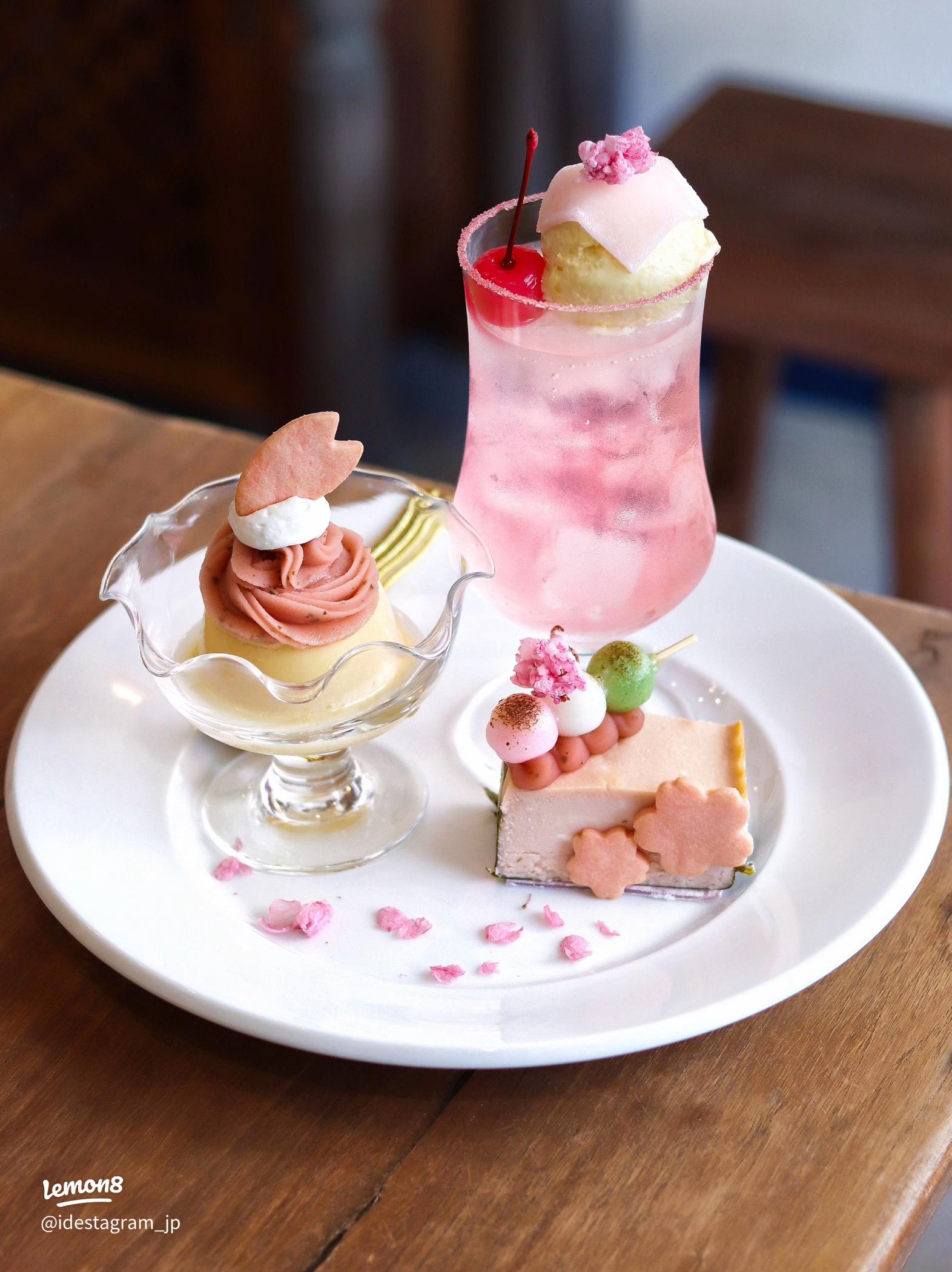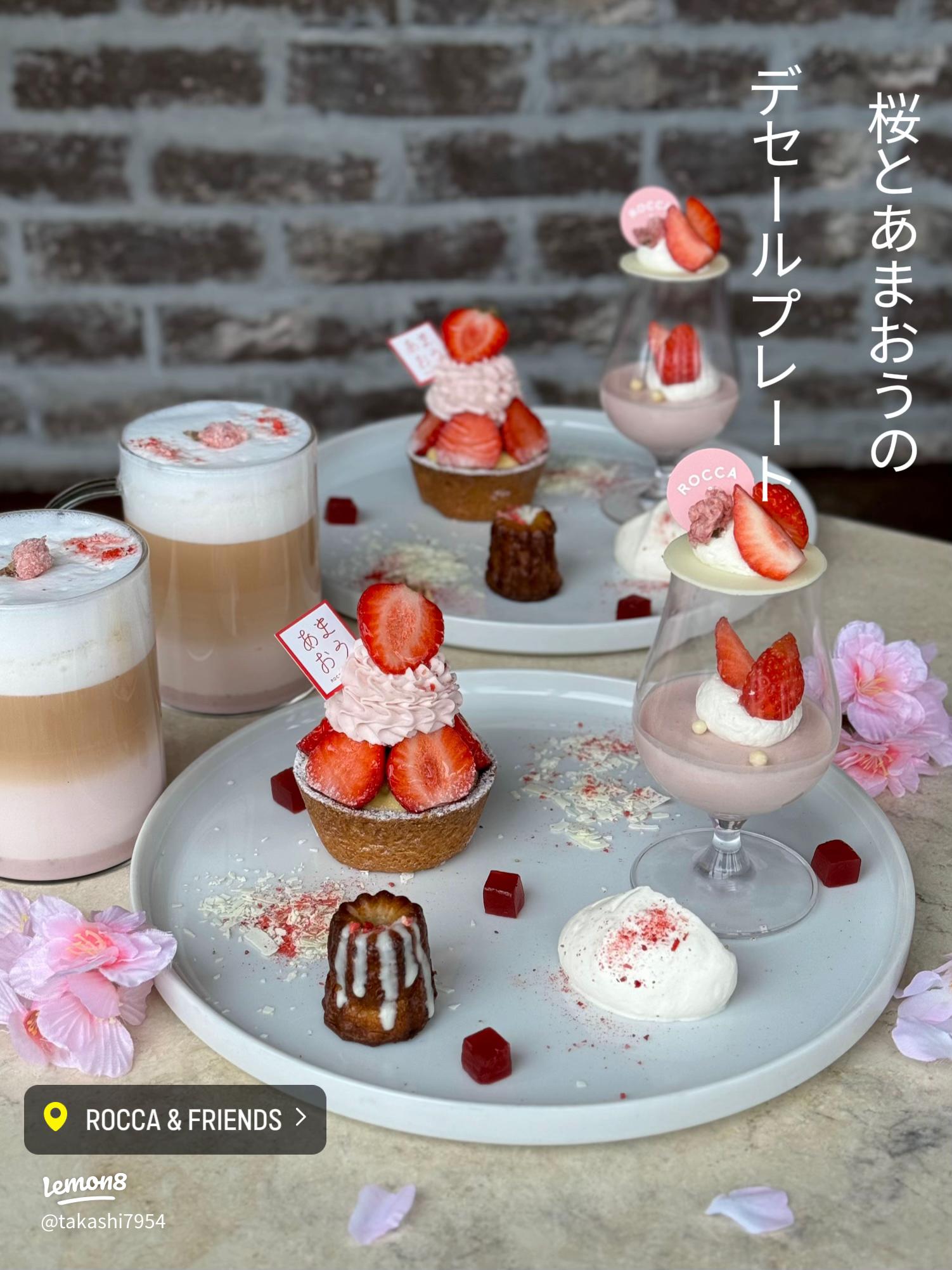 そろそろ終了です桜スイーツ🌸桜づくしのデザートプレート 🌸桜ベリーのホットラテ 🌸桜ベリーのクリームソーダ 🌸チョコミントパフェ春ver.桜のパウンドケーキ桜スイーツ2025さくらスイーツ桜スイーツデザートプレートデザート盛り合わせ桜のチーズ。