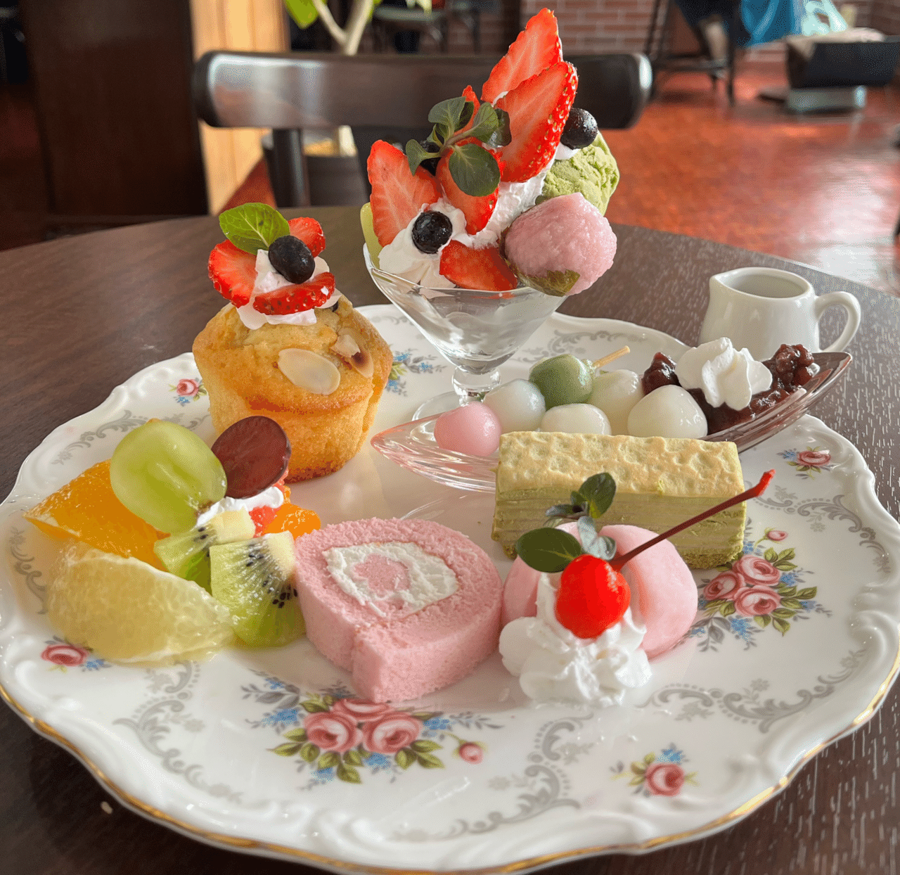 春のスイーツプレート - 郵便名柄館 テガミカフェ。