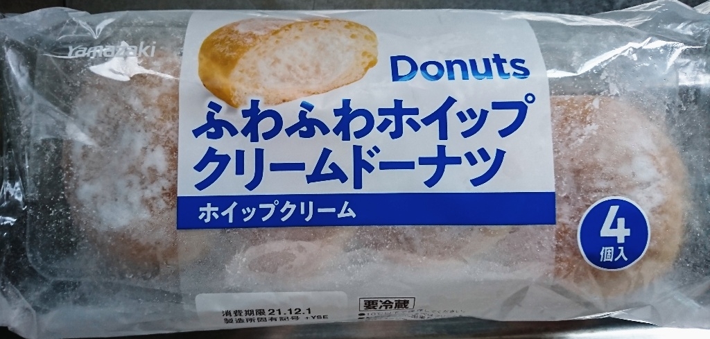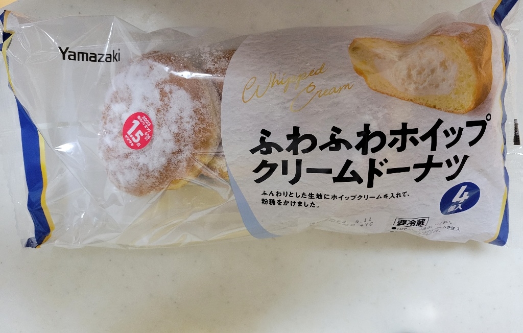 ヤマザキの『ふわふわホイップクリームドーナツ』が4個入りで美味しい!買てみた。