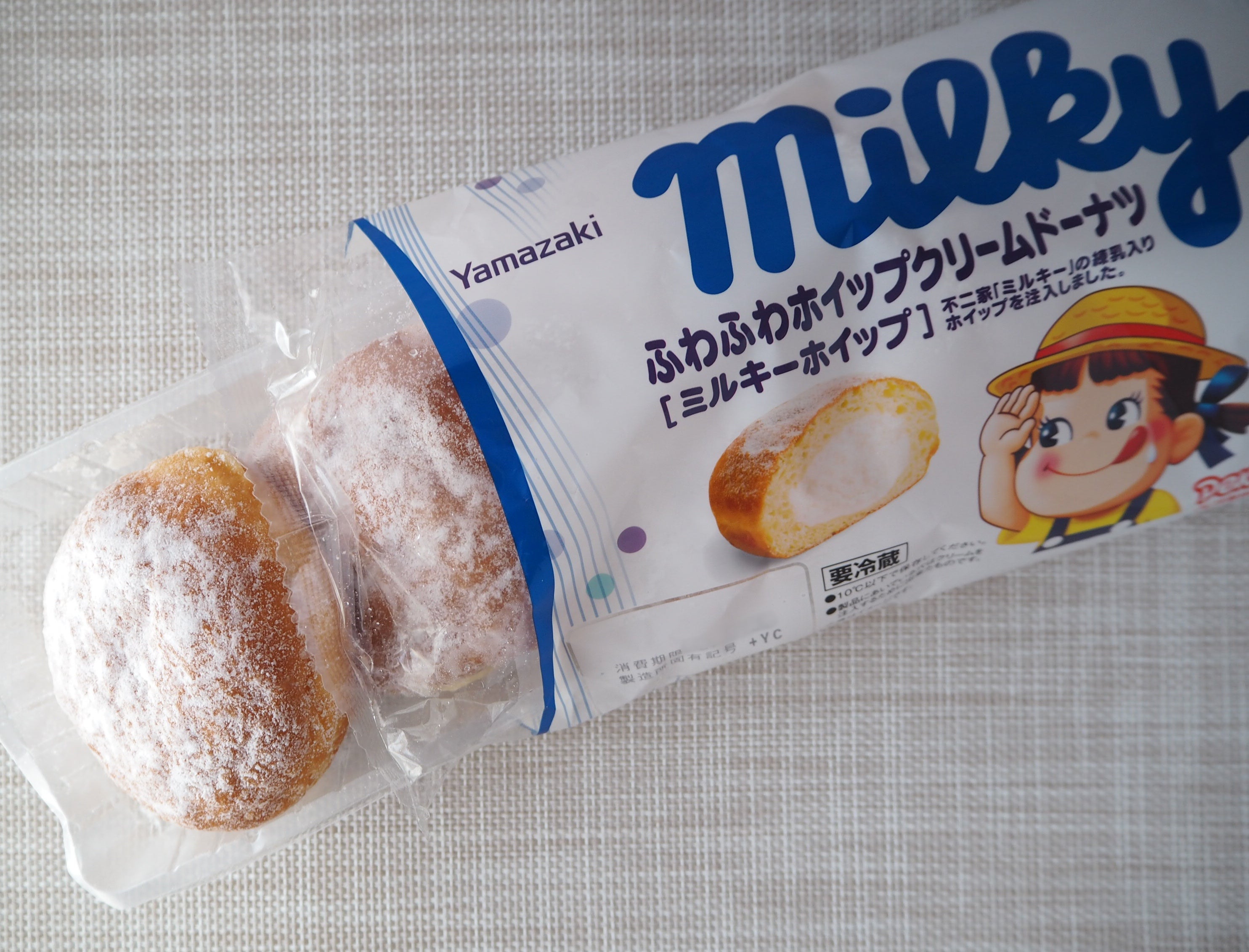 山崎製パン@商品情報発信中 on X: "\ひんやりおいしいおやつの日🍬ミルキー ホイップを使った不二家 コラボ商品✨🔵生コッペ ミルキーホイップクリーム⚪️ふわふわホイップクリームドーナツ ミルキーホイップ 4個入 ※どちらも要冷蔵です❄ ひんやり冷たい。