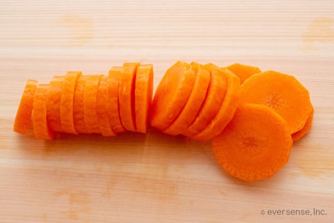 人参の輪切り料理にあわせて厚みを変えようコジカジ。