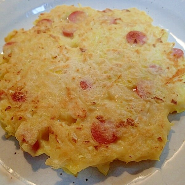 ❤米粉で豆腐とキャベツとウインナーのお好み焼き❤。