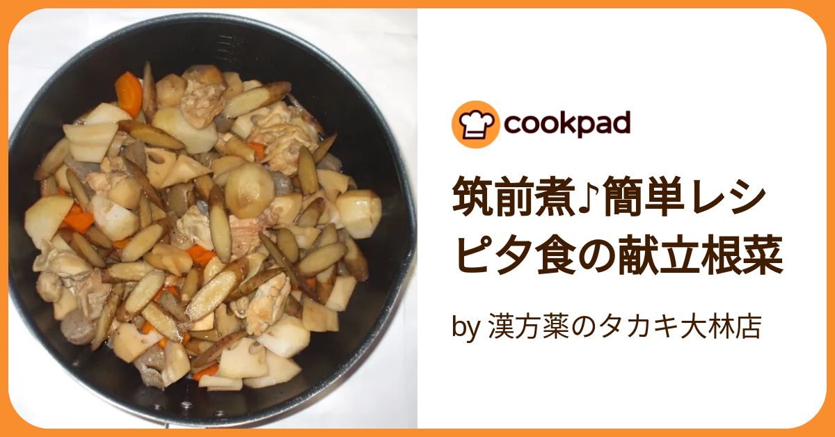 筑前煮♪簡単レシピ夕食の献立根菜 by 漢方薬のタカキ大林店クックパッド簡単おいしいみんなのレシピが392万品。
